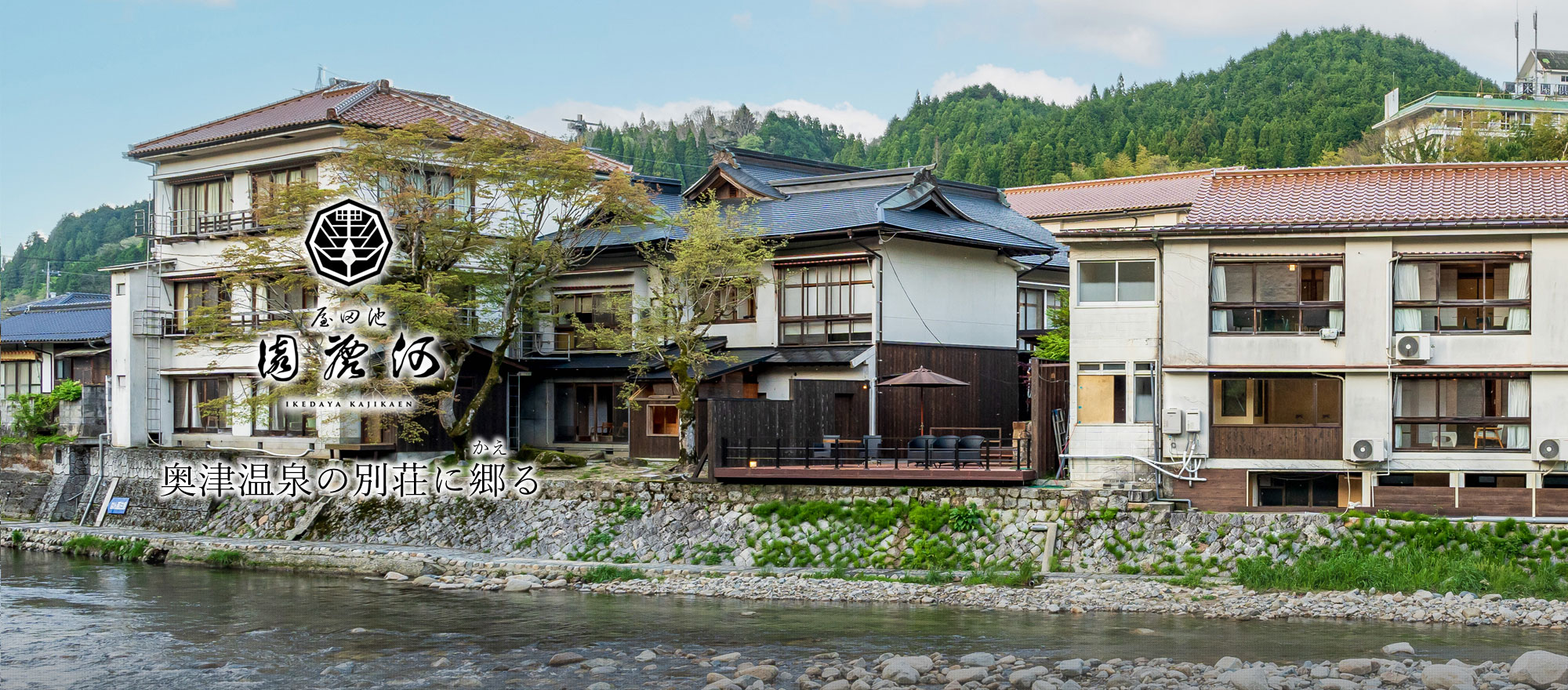 「河鹿園」は、美作国主・森忠政公の別荘跡にあり、昔からこの地は御殿屋敷・宮脇と呼ばれていました。この別荘では初夏には、河鹿蛙の鳴き声を耳にすることができ、秋には紅葉と吉井川沿いの困静な地にあります。奥津温泉の自然に身をまかせ、心ゆくまで温泉情緒をご満喫いただけるよう、心からのおもてなしで【奥津温泉の別荘】でお待ちしております。